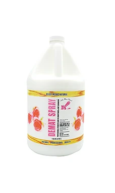 This all-natural biodegradable RTU Demat Spray is proudly made in the USA! Demat Spray will eliminate all mats and tangles on any types of fur while conditioning and strengthening the coat. With a 50:1 concentrate you’ll be sure to save money while controlling static and providing UV protection.